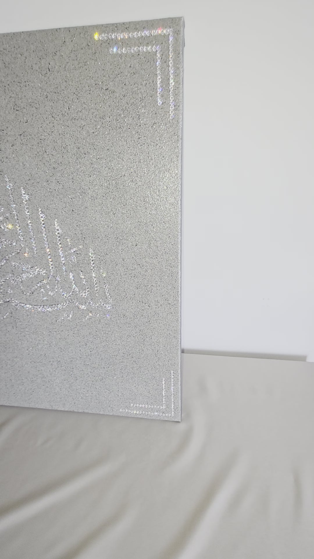 This captivating handmade canvas blends spiritual elegance with artistic luxury, featuring over 500 hand-placed genuine clear Swarovski crystals that catch and reflect light in the most stunning way. With dimensions of 40cm width, 51cm height, and 1.5cm depth, it is lightweight and ready to hang, making it an effortless yet powerful addition to any living space, prayer area, or gift collection.