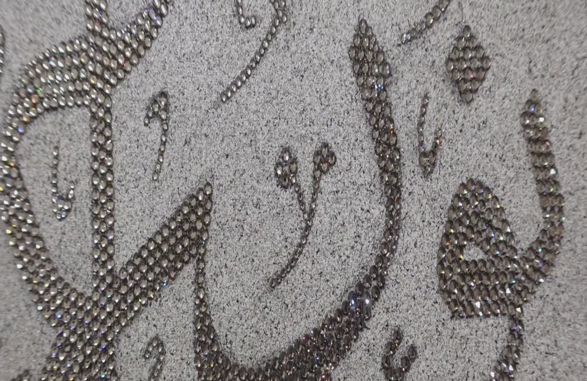 Measuring 100cm x 100cm, this piece is perfectly balanced in form, bringing harmony and depth to any space. Handcrafted with over 500 hundres of genuine Swarovski crystals, the calligraphy radiates brilliance, catching and reflecting light from every angle.