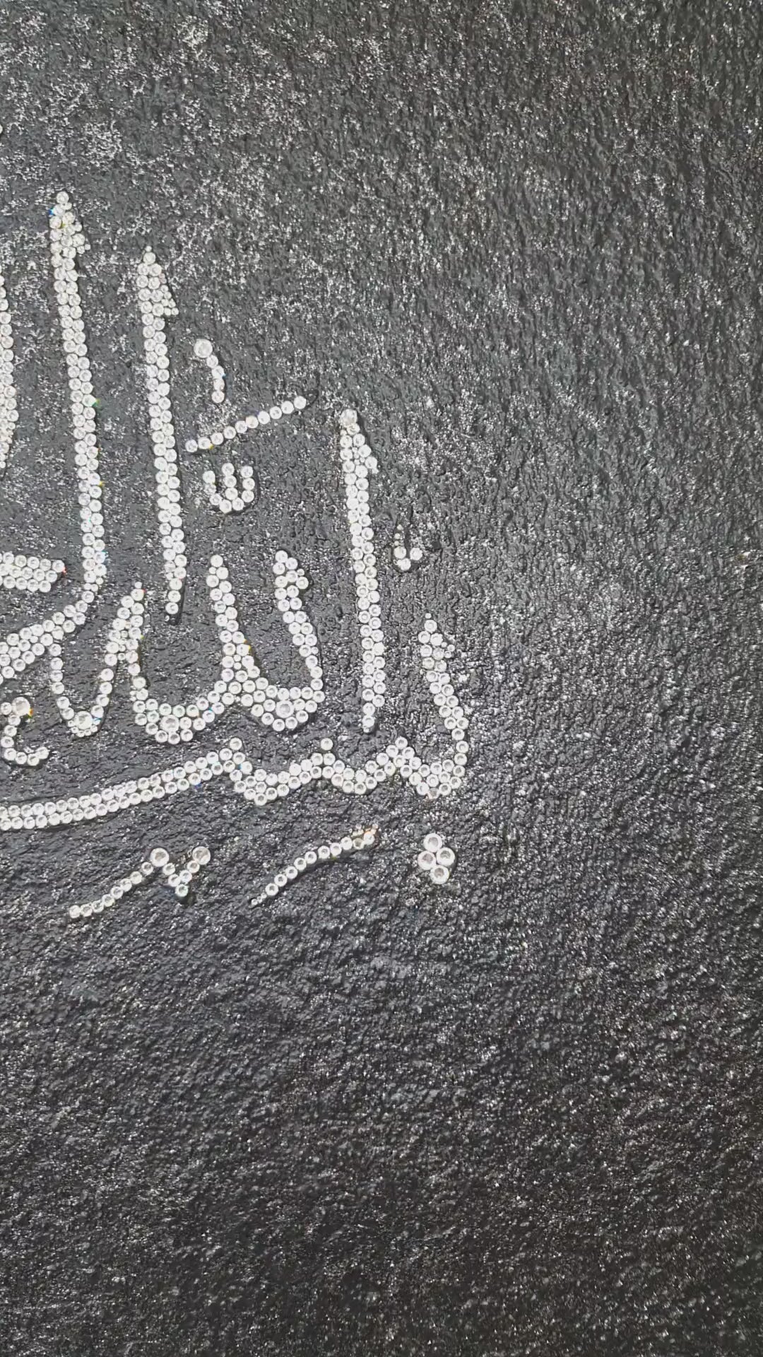 Subtle shimmer woven into the backdrop adds depth and softness, allowing the crystal calligraphy to truly shine. The effect is both striking and serene — a visual reminder of divine presence and mercy.